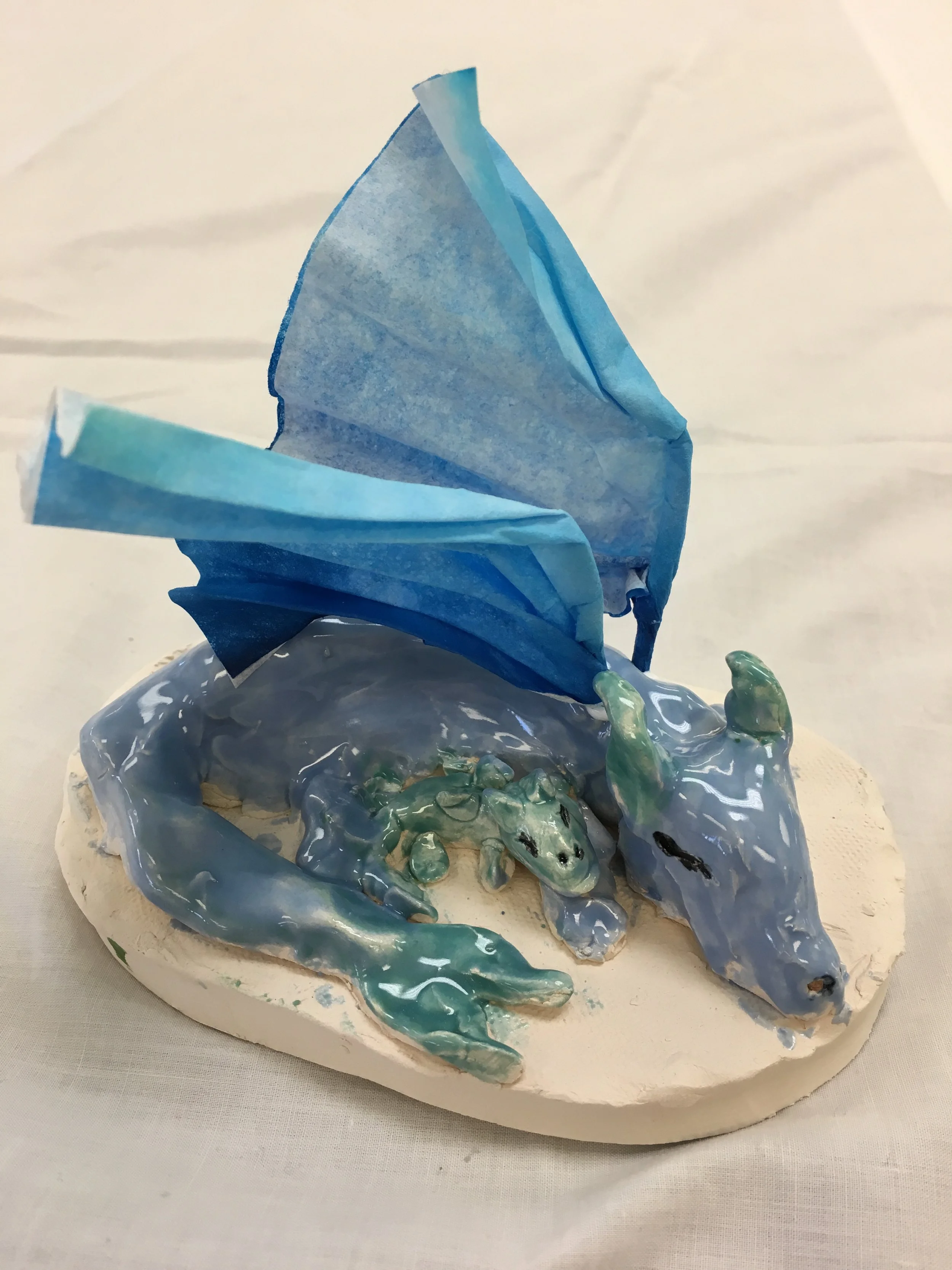 Summer programming allows for more time to experiment with materials. In summer we create mosaics, sculpt with clay, carve block prints, build Papier Mache masks and paint on canvas.